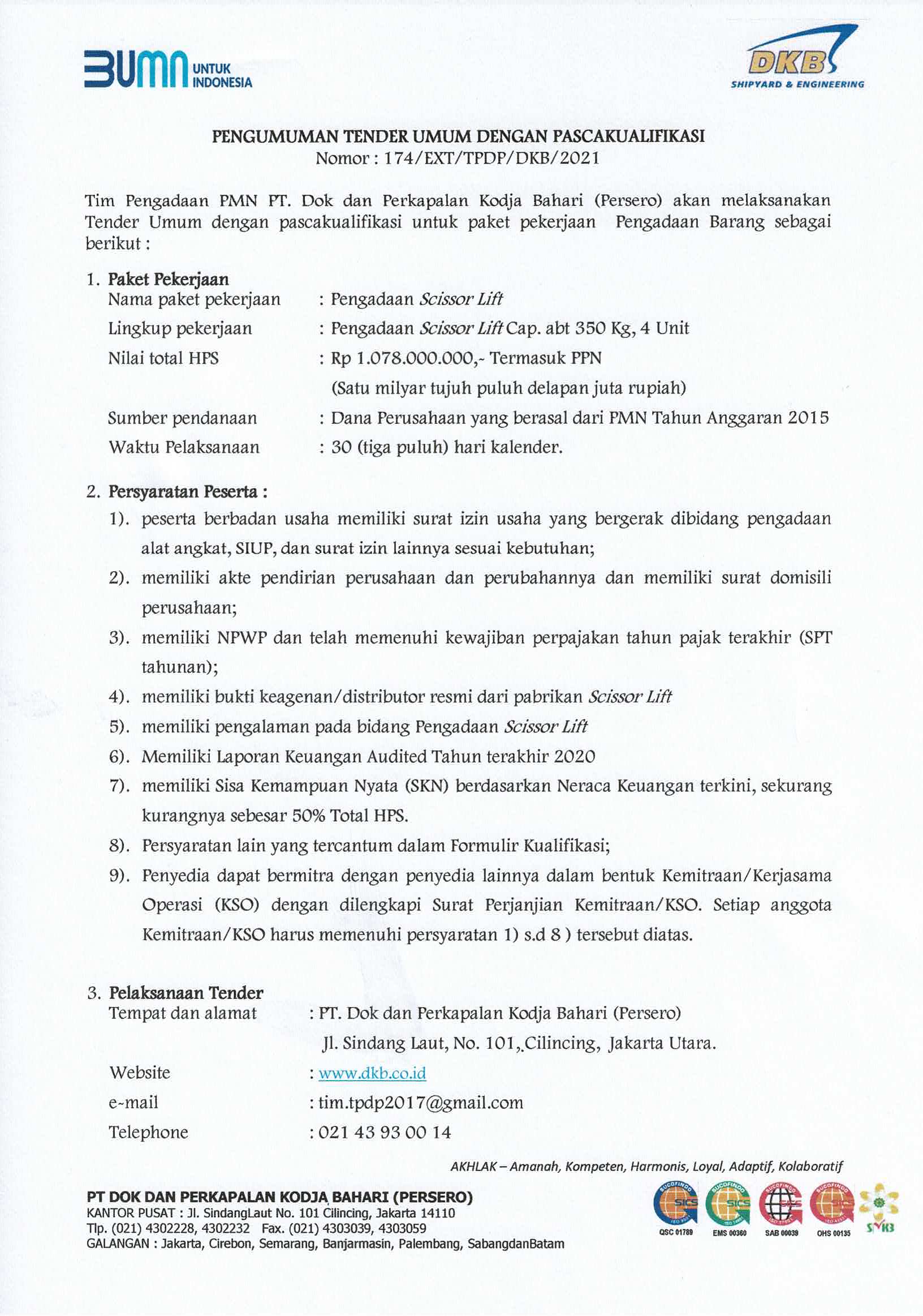 Pengumuman Tender Umum Pengadaan Scissor Lift Pengumuman Tender Umum Pengadaan Scissor LiftAdministrator2021-11-02T08:04:11+00:00November 2nd, 2021| […]Read More